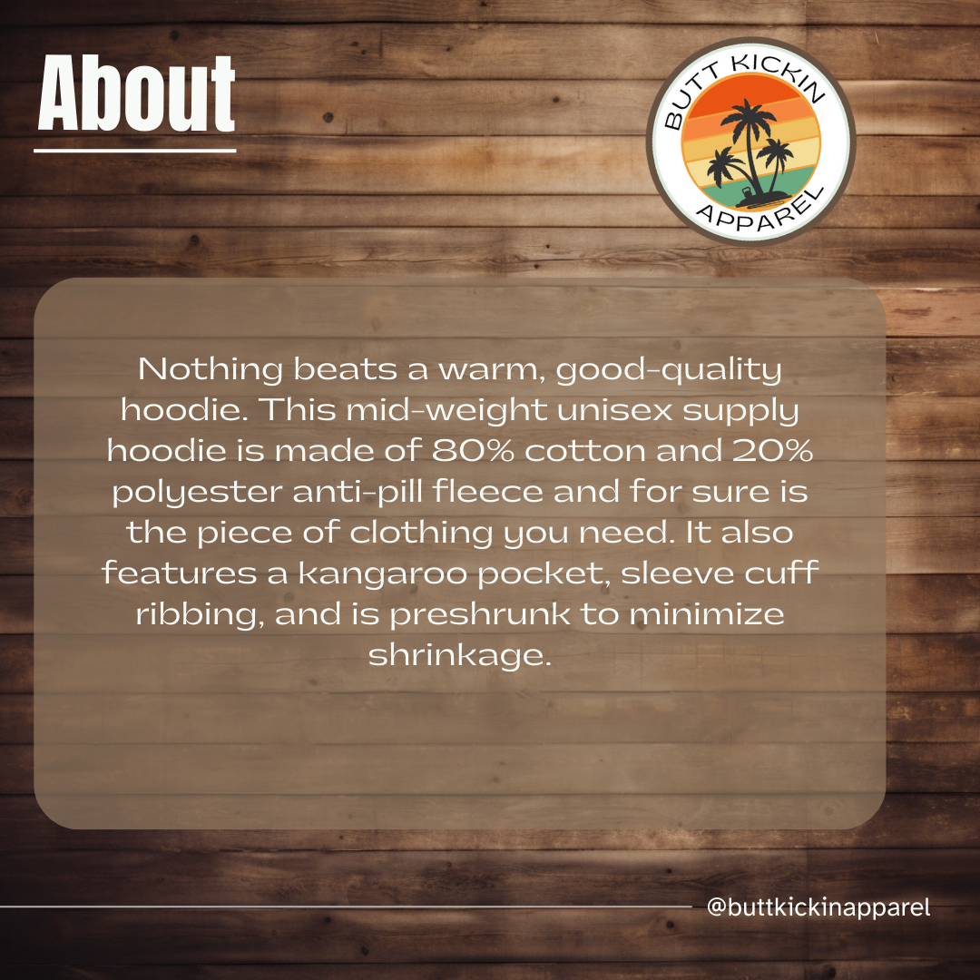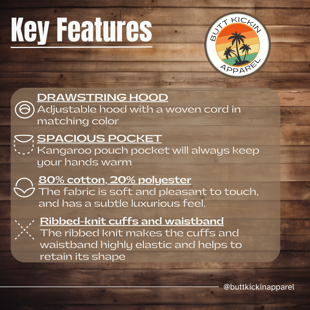 Rep the brand that brings the sweat and the smiles! Butt Kickin’ Apparel is all about fitness with a punchline, and this is our official company hoodie. Wear it to your workouts, embrace the grind, and let everyone know that gains and giggles go hand in hand!